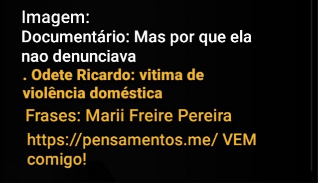 Fato. essa realidade nos mostra o que? Que ainda estamos longe de obter a resposta para tudo aquilo que queremos. Mulheres como dona Odete passaram a vida toda sofrendo violência por parte do marido. Aqui, não falo só a respeito da violência psicológica, sexual e física. Era comum o marido dizer: ” você tem a obrigação de transar comigo!”, porque você é a minha mulher…” Eu tenho outras na rua, mas você tem que transar comigo “, ou seja, o marido violentada a própria esposa, na verdade, ele ” obrigava essa mulher a manter relações sexuais com ele.” Era o ” débito conjugal ” que a própria lei protegia, até compreender que tava protegendo o crime de estupro. E aí, as frases pejorativas deixaram de fazer sentido, não é? Só após esse entendimento é que modificaram as modificações necessárias na lei, inclusive agora sim, protegendo o direito da mulher. Profundo isso, não? Mas, é uma realidade que também, assim como as outras não conseguiram ser modificadas de maneira repetida, pelo contrário, levaram séculos para ter um novo significado. Resta agora, a mulher dizer ” não ” esse tipo de violência. Mas, dessa vez, sem medo.