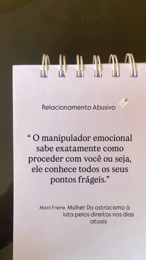 Quando falamos a respeito de relacionamento abusivo vale ressaltar que o que sentimos é muito importante, porque não vivemos somente pelo o mundo externo. Não, o mundo interno, os nossos sentimentos, as nossas emoções influenciam diretamente na nossa qualidade de vida e na saúde mental e emocional. Quando sentimos culpa, tristeza, raiva isso tem consequências negativas na nossa saúde emocional. Ao falar de relacionamentos abusivo é necessário darmos importância as coisas as quais ouvimos. Veja, num contexto onde a forma de lidar do outro é grotesca, é abusiva ou seja, a maneira de lidar do parceiro, o comportamento, as atitudes invasivas/ abusivas são frequentes; misturado a isso, existem brigas constantemente, humilhações entre outros e, se a vítima só escuta, só absorve essas coisas negativas, certamente com o passar do tempo, ela irá adoecer. A princípio, por conta de uma discussão, essa mulher pode ter palpitações, ansiedade, dores de cabeça; culpa. Evidente que, todas essas coisas são cumulativas e os resultados aparecem muito tempo depois. Entender esse processo é fundamental para ter consciência da realidade e buscar ajuda, sobretudo, buscar sair ao invés de demonstrar resistência ou esperar pela mudança repentina da outra pessoa.