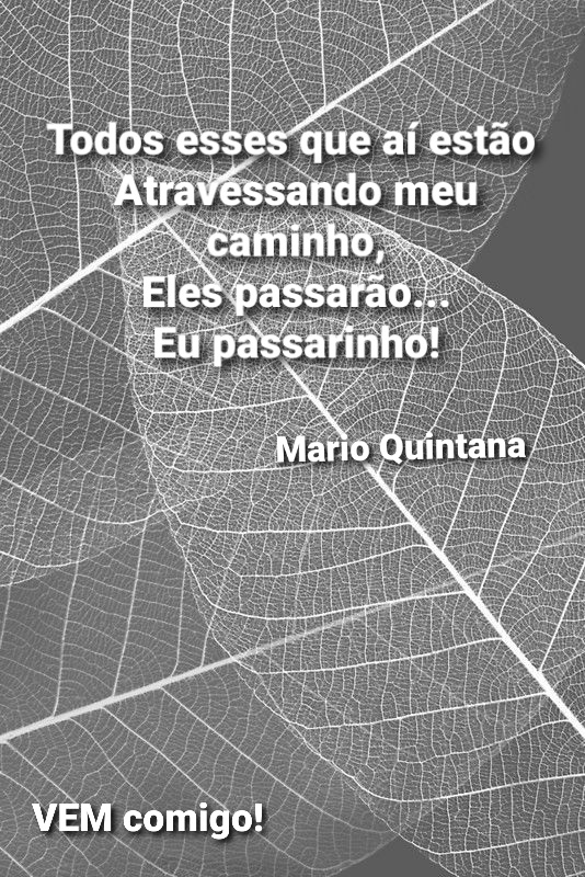 Todos esses que aí estão Atravessando meu caminho, Eles passarão… Eu passarinho! Mario Quintana, Poeminha do Contra Cultura genial.com Imagem: Pinterest VEM comigo! Marii Freire Pereira Santarém, Pá 23 maio de 2020