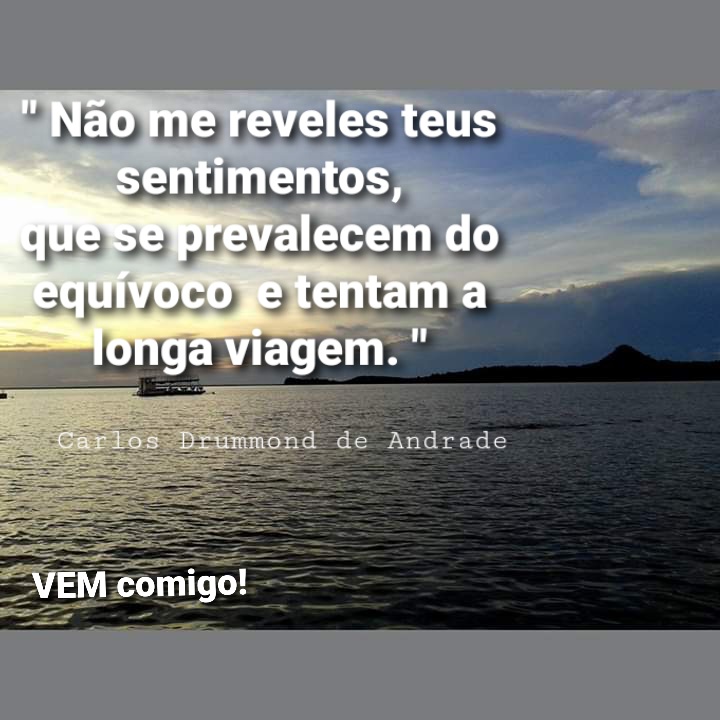 ” Não me reveles teus sentimentos, Que se prevalecem do equívoco e tentam a longa viagem.” Carlos Drummond de Andrade. Procura da poesia A Rosa Do Povo. Círculo do Livro. 1945 VEM comigo! Marii Freire Pereira Imagem: Alter do Chão, Marii Freire Santarém, Pá 27 de maio de 2020