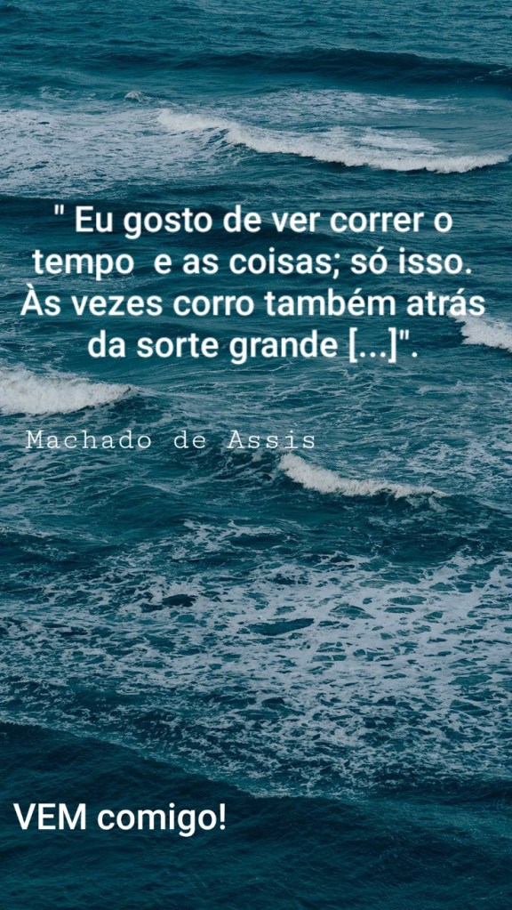 ” Eu gosto de ver correr o tempo e as coisas; só isso. Às vezes corro também atrás da sorte grande […]”. Machado de Assis. Várias Histórias ( Vidav& Obra). Ática, 1997 VEM comigo! Marii Freire Pereira Imagem e criação: Pinterest, Marii Freire Santarém, Pá 2 de junho de 2020