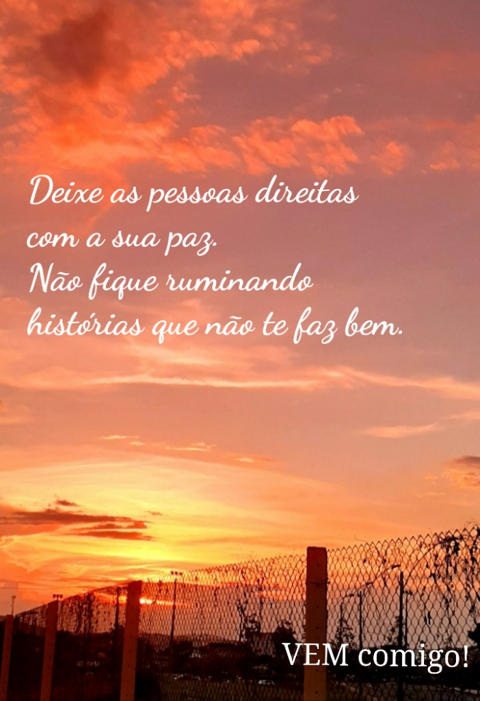 ” Deixe as pessoas direitas com a sua paz. Não fique ruminando histórias que não te faz bem “.
