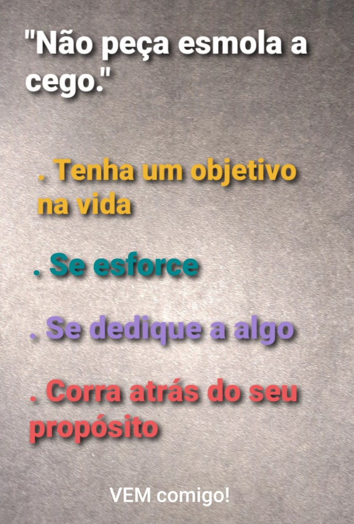 Na vida, não se faça de ” coitadinho”. Não negue os seus valores pra conseguir por momento aquilo que lhe trará algum conforto. “Não peça de quem não tem…”. Seja uma pessoa íntegra, direta, objetiva.