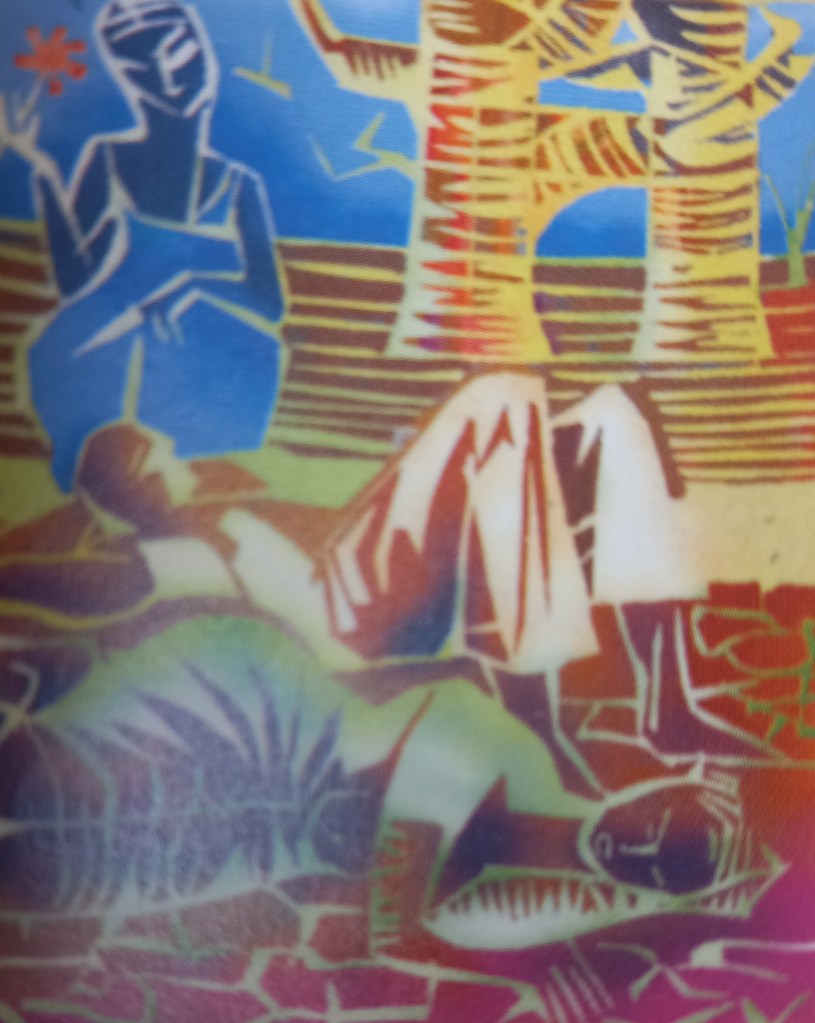 Da cintura para baixo a vida revoltava-se e freme na carne e transforma-se em ritmo. O mundo está ali agora e os olhos dos homens estão cheios de tesoiros. Elas estão sérias nas caras e nos corpos são vulcões. África dança e vive ao som do chigubo e as ancas são muitas histórias de luar e sombras de cajueiro em flor. África dança e o mundo está suspensos nos olhos dos homens palpitantes nas promessas latentes. Promessas de homens. Promessas de machos.