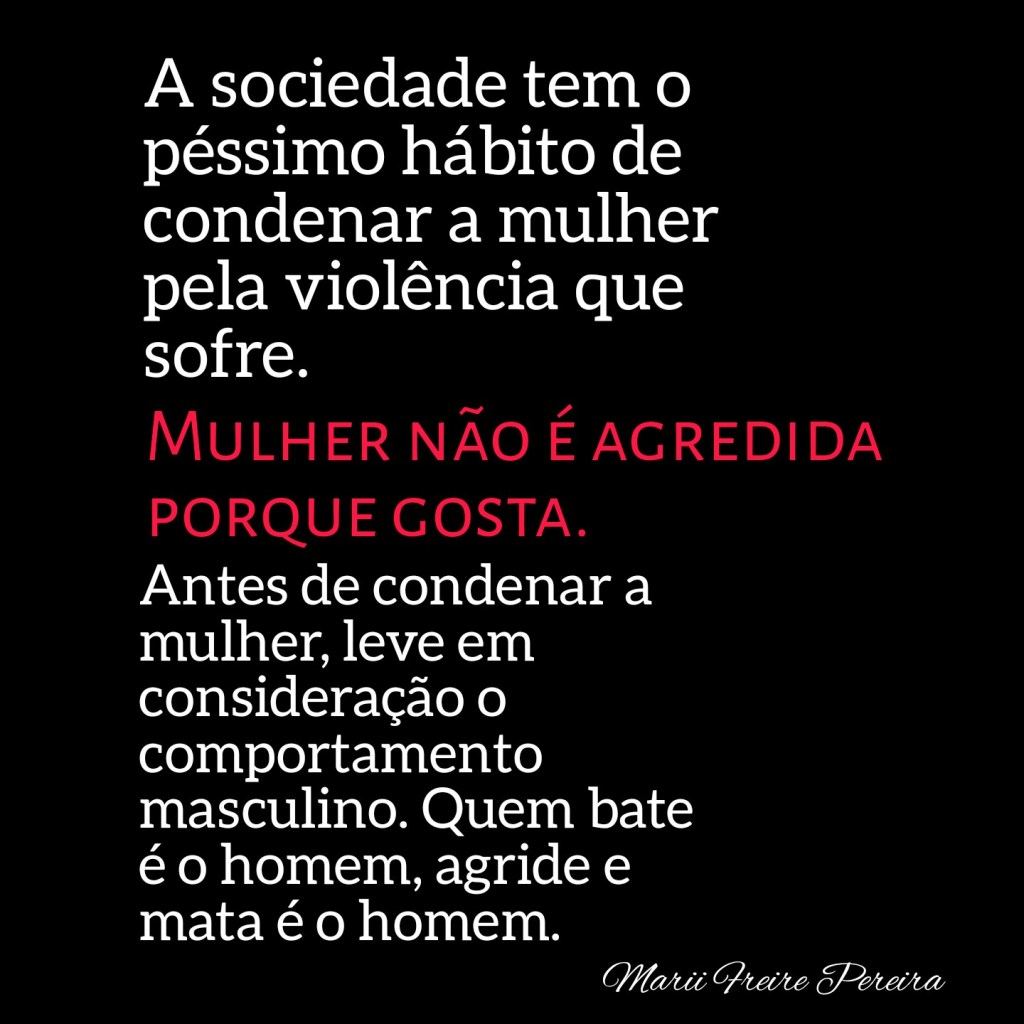 Antes de condenar a mulher, leve em consideração o comportamento masculino. Quem bate é o homem, agride e mata …é o homem.