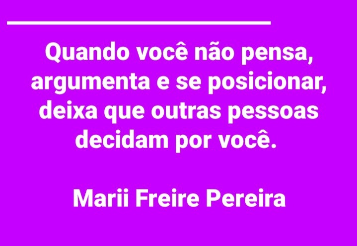 ” Quando você não pensa, argumenta e se posicionar, deixa que outras pessoas decidam por você.