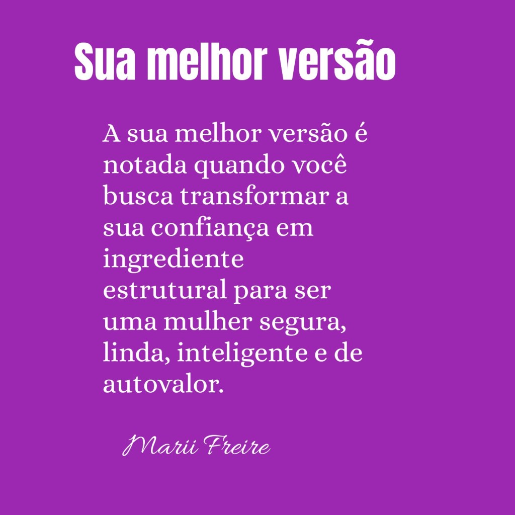 A sua melhor versão é notada quando você busca transformar a sua confiança em ingrediente estrutural para ser uma mulher segura, linda, inteligente e de autovalor.