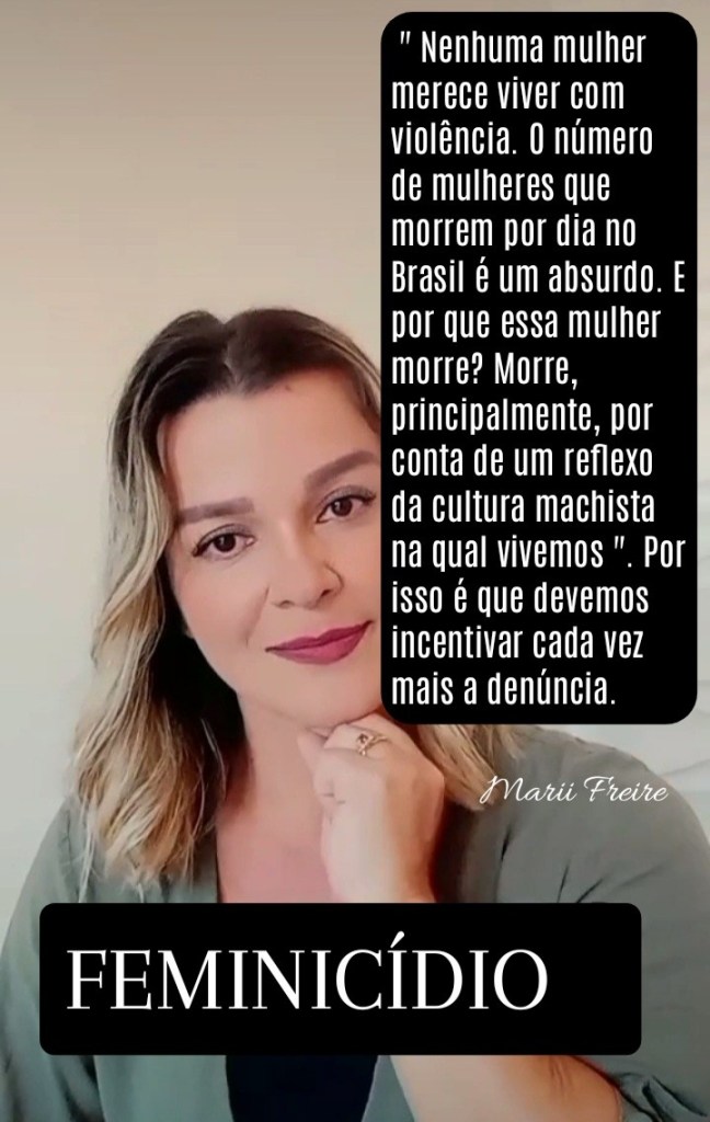 ” Nenhuma mulher merece viver com violência. O número de mulheres que morrem por dia no Brasil é um absurdo. E por que essa mulher morre? Morre, principalmente, por conta de um reflexo da cultura machistana qual vivemos.” Por isso, é que devemos incentivar cada vez mais a denúncia.
