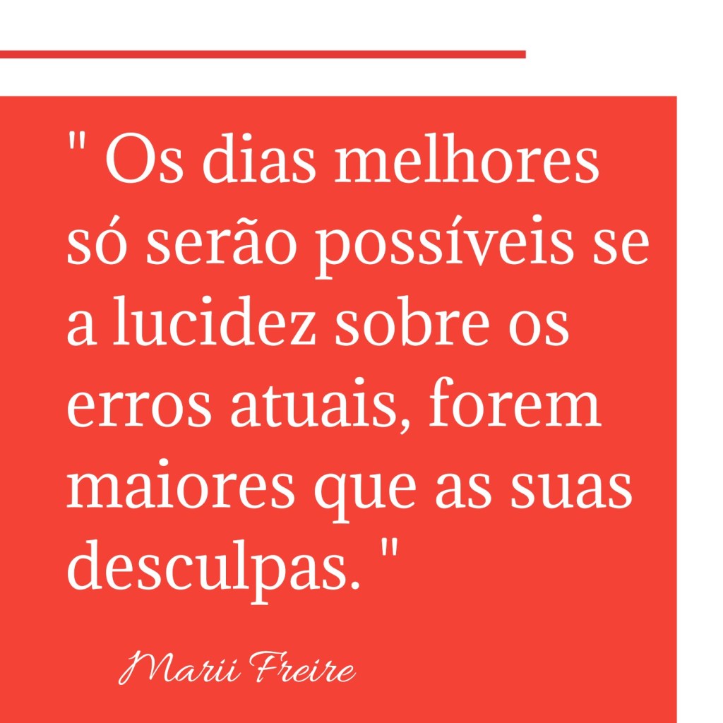 ” Os dias melhores só serão possíveis se a lucidez sobre os erros atuais, forem maiores que as suas desculpas. “