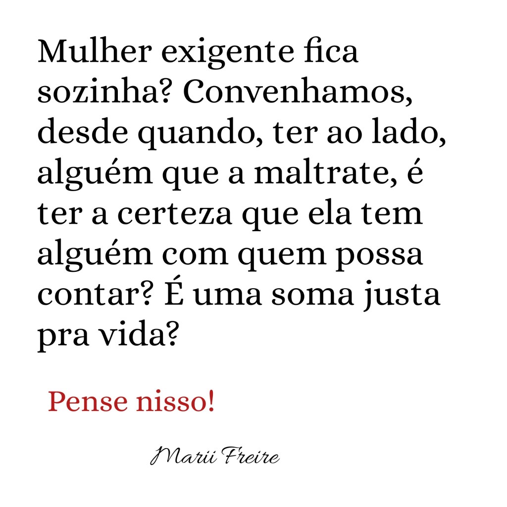 Mulher exigente fica sozinha? Convenhamos, desde quando, ter ao lado, alguém que a maltrate, é ter a certeza que ela tem alguém com quem possa contar? É uma soma justa pra vida?