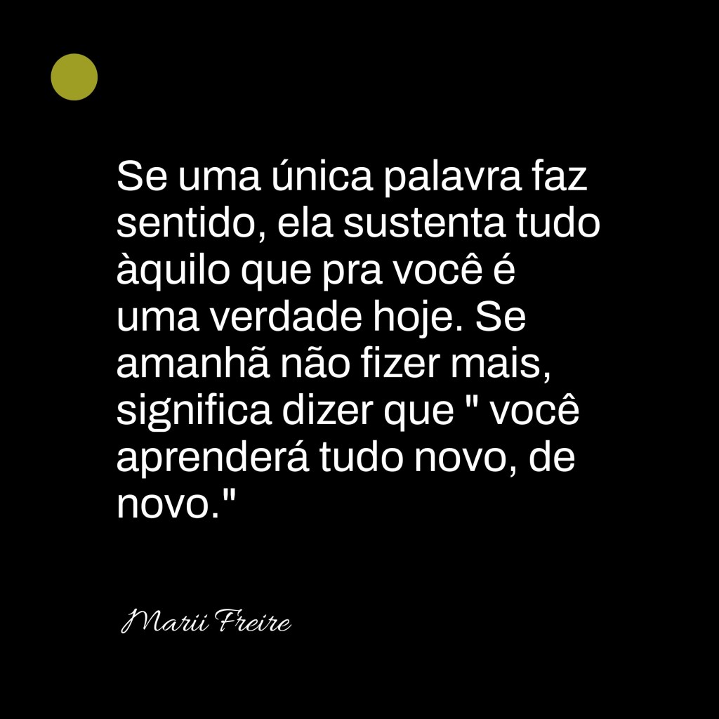 “Se uma única palavra faz sentido, ela sustenta tudo àquilo que pra você é uma verdade. Se amanhã não fizer mais, significa fizer que ” você aprenderá tudo novo de novo.”