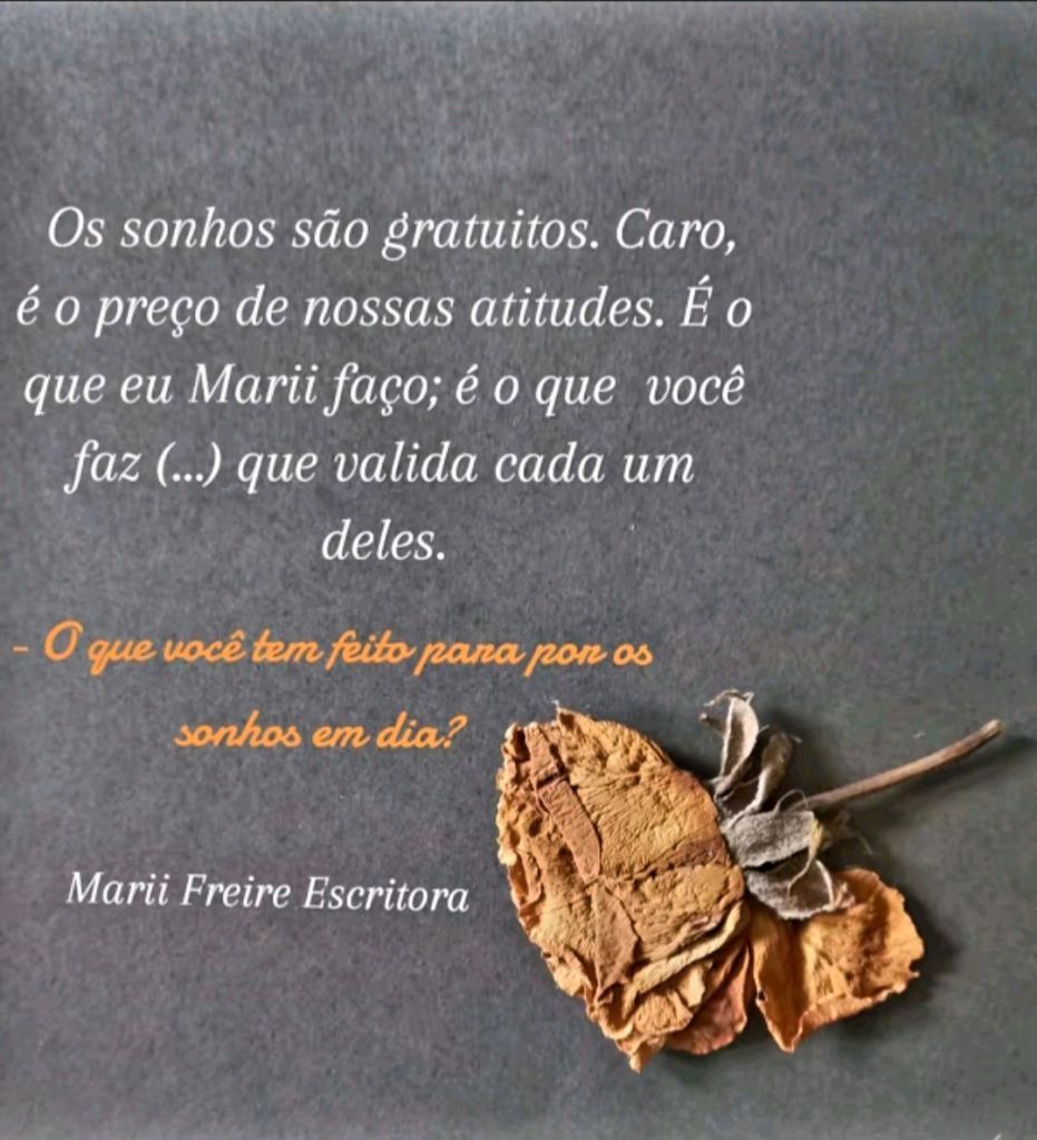 Os sonhos são gratuitos. Caro, é o preço de nossas atitudes. É o que eu Marii faço; é o que você faz (…) que valida cada um deles.