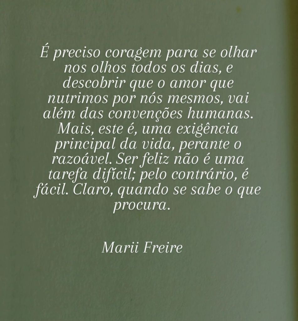 É preciso coragem para se olhar nos olhos todos os dias, e descobrir que o amor que nutrimos por nós mesmos, vai além das convenções humanas. Mais, este é, uma exigência principal da vida, perante o razoável. Ser feliz não é uma tarefa difícil; pelo contrário, é fácil. Claro, quando se sabe o que procura.