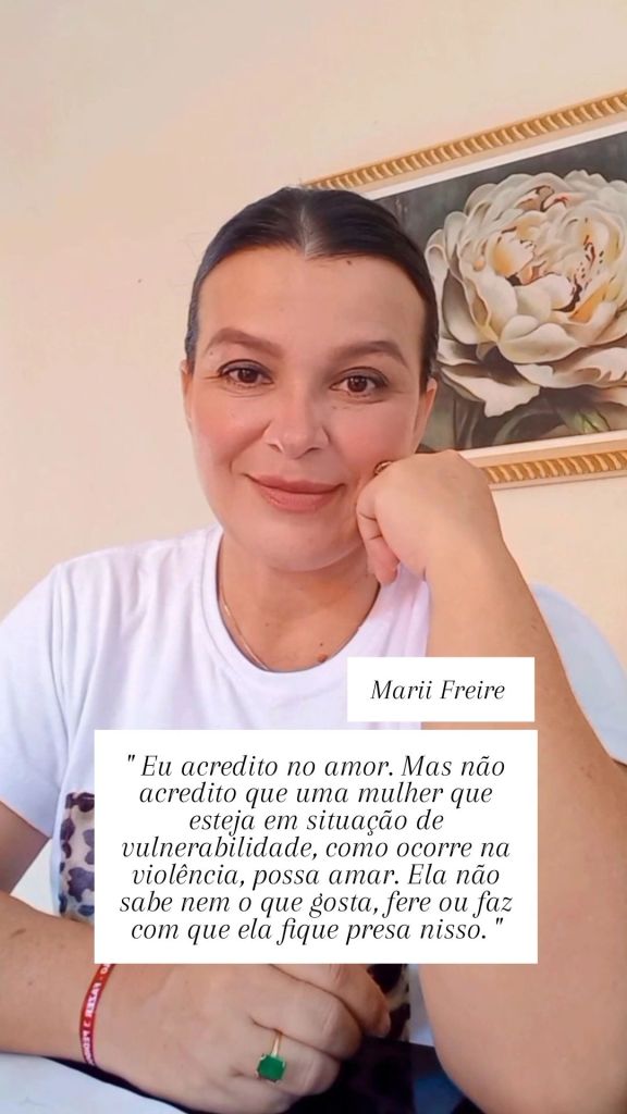 ” Eu acredito no amor. Mas não acredito que uma mulher que esteja em situação de vulnerabilidade como ocorre na violência, possa amar. Ela não sabe nem o que gosta, fere ou faz com que ela fique presa nisso. “