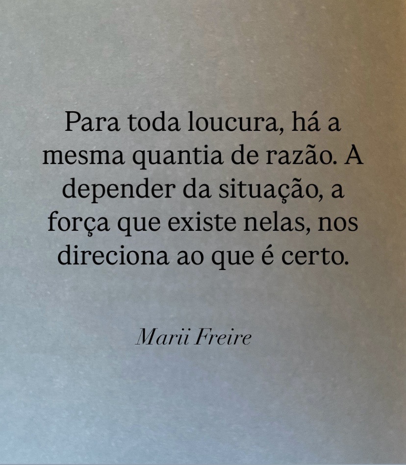 Para toda loucura, há a mesma quantia de razão. A depender da situação, a força que existe nelas, nos direciona ao que é certo.