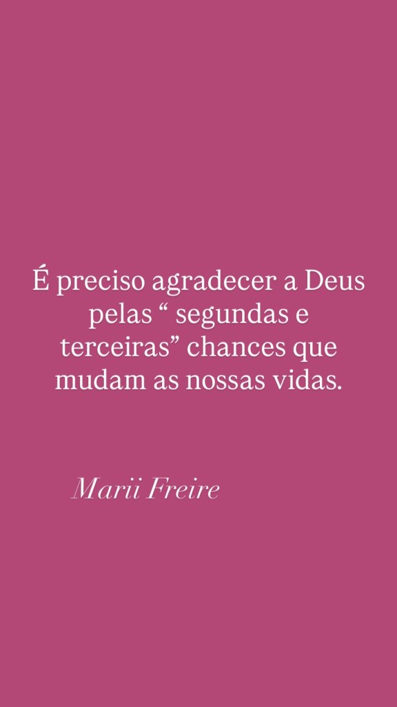 É preciso agradecer a Deus pelas “ segundas e terceiras “ chances que mudam as nossas vidas.