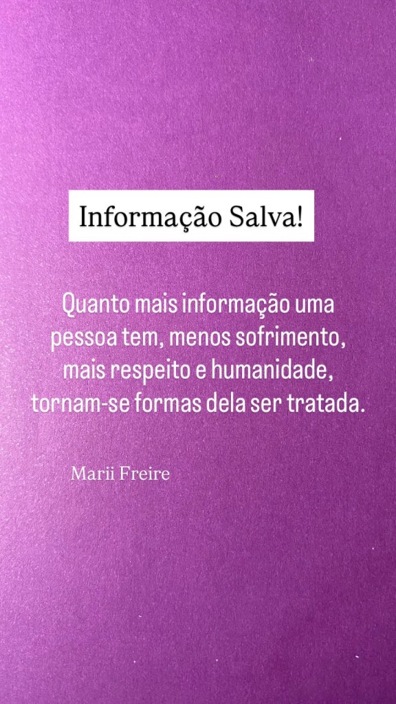 Quanto mais informação uma pessoa tem, menos sofrimento, mais respeito e humanidade, tornam-se formas dela ser tratada.