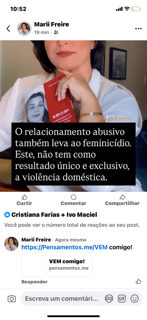 Hoje, ao publicar esse texto : Relacionamento Abusivo X Violência Doméstica, em que apareço na imagem ( com o meu livro) na mão, e levar essa publicação ao ( Facebook e Instagram) plataformas oficiais onde publico o meu trabalho; obviamente tirando LinkedIn, Kwai e Tik Tok Brasil e X, não faço uso de nenhuma outra rede social. Todavia, hoje pela manhã, como disse anteriormente, me vi surpresa com o fato de “colocarem” a venda o “ domínio “ do meu blog ( Pensamentos.me/VEM comigo!) ; que inclusive, aparece com letras todas “ maiúsculas “ ( PENSAMENTOS. ME) . Não há similar, e se existe é um problema da WordPress, não meu.