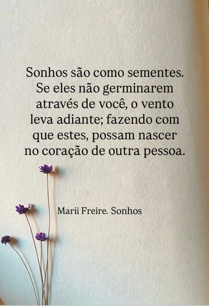Sonhos são como sementes. Se eles não germinarem através de você, o vento leva adiante; fazendo com que estes, possam nascer no coração de outra pessoa.