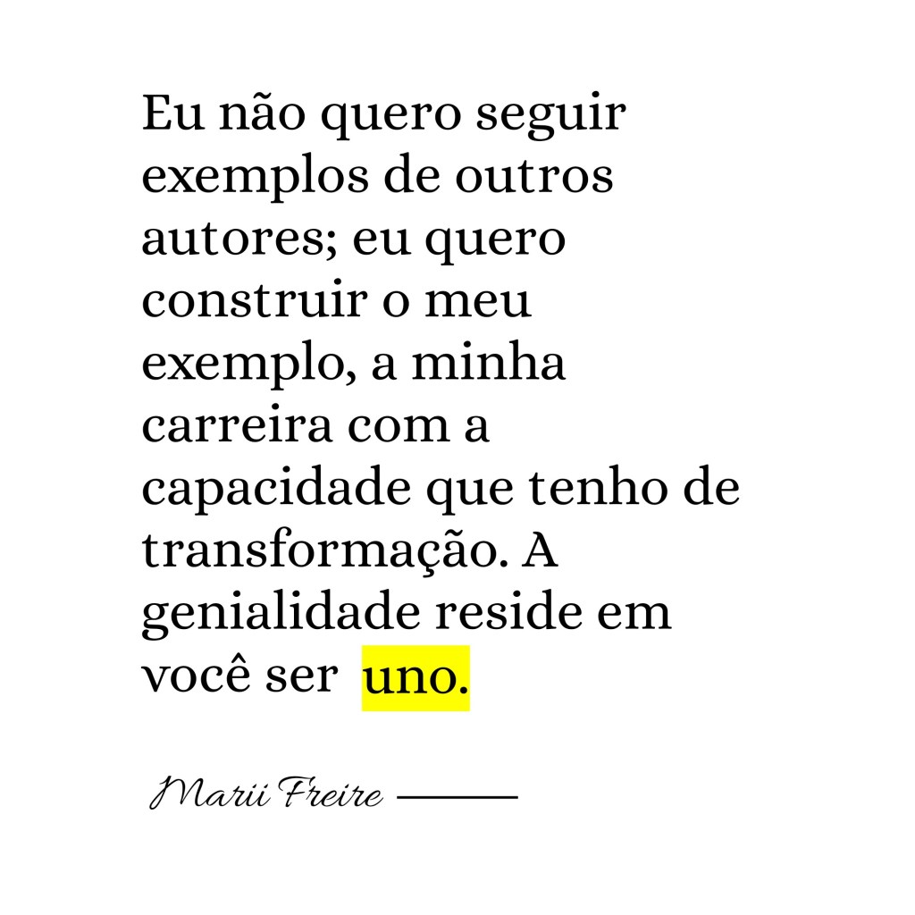 Eu não quero seguir exemplos de outros autores; eu quero construir o meu exemplo, a minha carreira com a capacidade que tenho de transformação. A genialidade reside em você ser uno.
