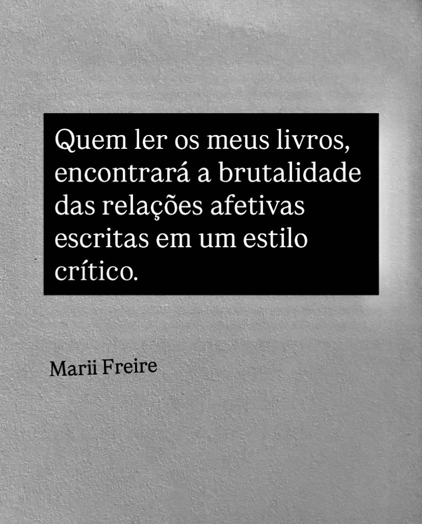 Hoje, o tema violência contra a mulher, tornou-se uma marca registrada para “ Marii Freire “, não pelo engajamento, que isso é mínimo. Mas, pela importância que esse tema tem diante de um país que, infelizmente, mais mata mulheres ( feminicídio), pelo simples fato de ser mulher. E a retórica em relação ao problema, ainda é a mesma ou seja, busca-se “ justificativas num passado com ideias que nos abandonam”. Isso é inaceitável nos dias atuais. O eco dessas diretrizes culturais pretéritas não condizem com os novos moldes que hoje nos abraçam. A minha visão critica, ela não é pessimista. Ela é sim, uma visão que faz uma leitura intrigante sobre essa questão ou seja. contrapõem-se; mostrando elementos novos diante de uma construção secular de abismo, onde por não querer abrir mão do poder patriarcal, continua-se “ jogando a mulher “ nessa escuridão à baixo “ e fazendo com que todos vejam que só há um palco para o protagonismo: o masculino. Todavia, essa é uma briga que também fala sobre a importância da contribuição feminina na história, porque não somos selvagens/ irracionais; somos seres gregários, antes de qualquer coisa. Portanto, não observar essa questão, é negar-nos. Mas não é negar qualquer coisa, é negar a nossa humanidade. E como disse “aquela escritora do século XVIII, e que não vou citar o nome dela, mas quem for realmente bom de história irá saber de quem falo, escreveu o seguinte : “ o poder dos maridos, assim como os dos Reis podem ser contestados “, é o que eu, Marii Freire, faço diante da estupidez de toda uma construção cultural que continua nos negando espaço, direitos e fala, como dito anteriormente.