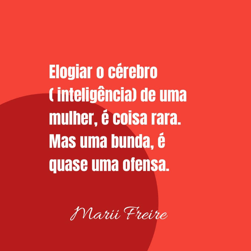 Satírica a frase, é bem verdade. Porém, cabe aqui uma contestação sincera, e um reparo até na nossa forma de expressa o reconhecimento à mulher em nossa sociedade. Eu como mulher, falo por mim e penso que por muitas outras também que lutam para serem reconhecidas por tentar se destacar não pelo corpo, mas pelo esforço, pela capacidade intelectual, cognitiva, simpatia, feminilidade, além de outras qualidades que nos são inerentes, posso dizer que essa é uma luta diária. Mas o que vemos é o vício de uma sociedade que buscar atribuir qualidades a mulher pelo corpo, pelo bumbum principalmente. “Cá entre nós” – há uma verdade incontestável: a mulher hoje, ela é um ser útil, ao invés de prestativa. O que quero dizer com isso? Que diferente do passado, a mulher tem lutado pelo seu lugar de fala, de representatividade inclusive, e talvez a sua maior luta tenha sido essa, digo ” a busca pelo reconhecimento” mas não qualquer forma de reconhecimento, mas aquele que a coloque em um lugar de destaque entre as demais formas.