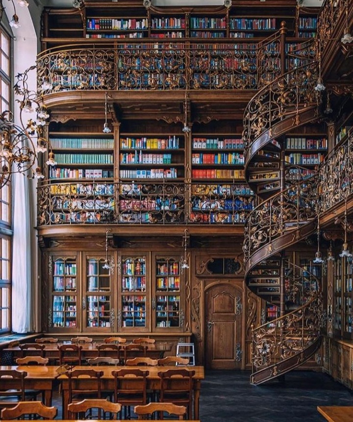 Essa imagem é apaixonate, certamente. Bibliotecas, livros, conhecimento é a forma de como lidamos com isso, é algo que desperta no ser humano discussões sobre a vida, sobre responsabilidades perante a lei, o mundo de modo geral. O papel principal da biblioteca é ser um norte na vida do homem, digamos ” na condição humana. Obviamente, existemoutros fatores que implicam nessa frase, mas sem bibliotecas, seríamos mais pobres.”. Sem o saber, sem o conhecimento, quem seríamos nós? A fonte da sabedoria herdada pela humanidade, vem dos livros, é neles ele que ficam registradas as nossas ações. Evidente que, hoje existem outras fontes, mas como as gerações passadas poderiam acumular tantas histórias, bem como o próprio conhecimento? Compreende a importância disso para a humanidade? Em meios aos conflitos, se recorre aos livros. Portanto, valorizemos este que é, um dos nossos maiores patrimônios. Livros!