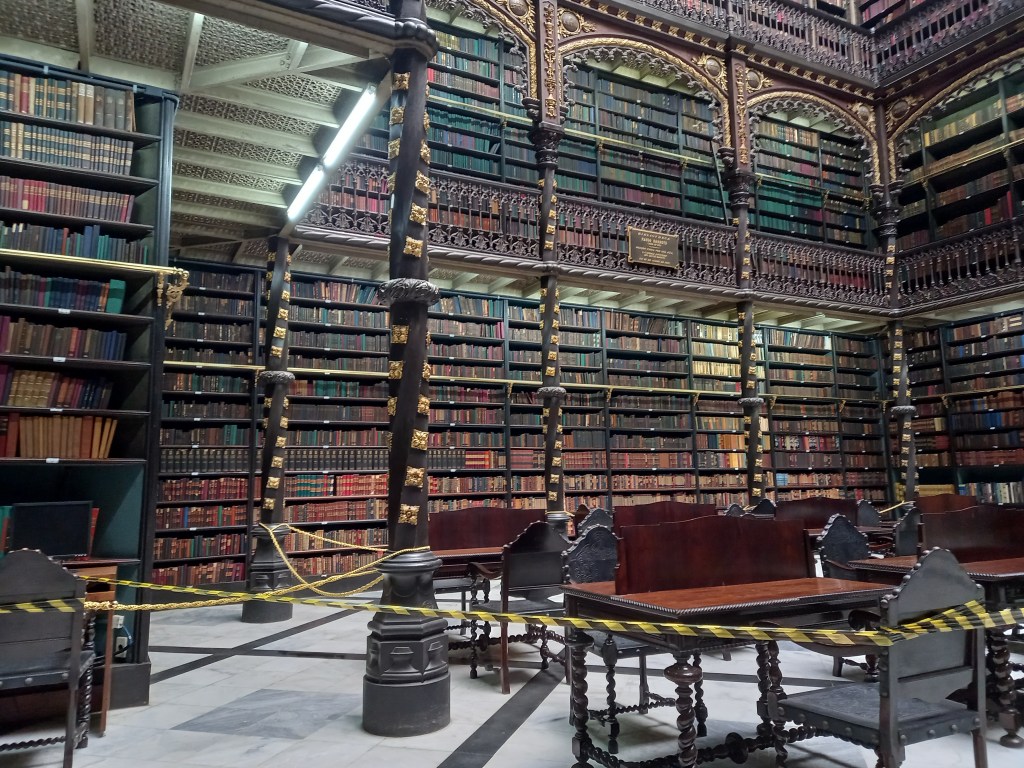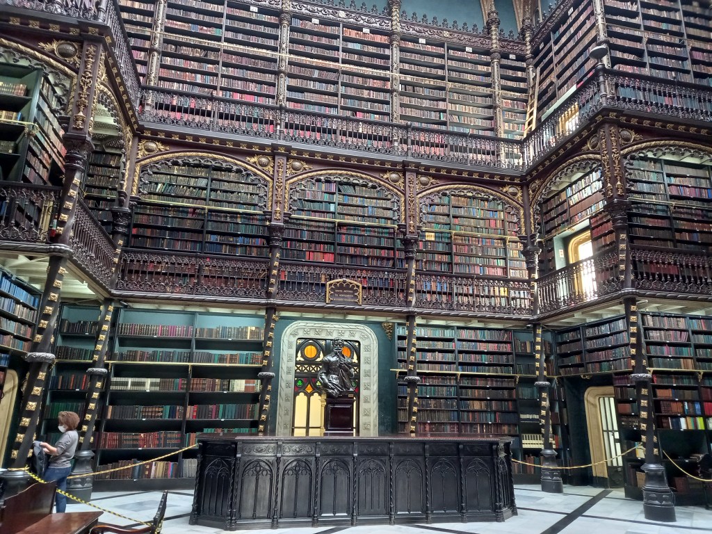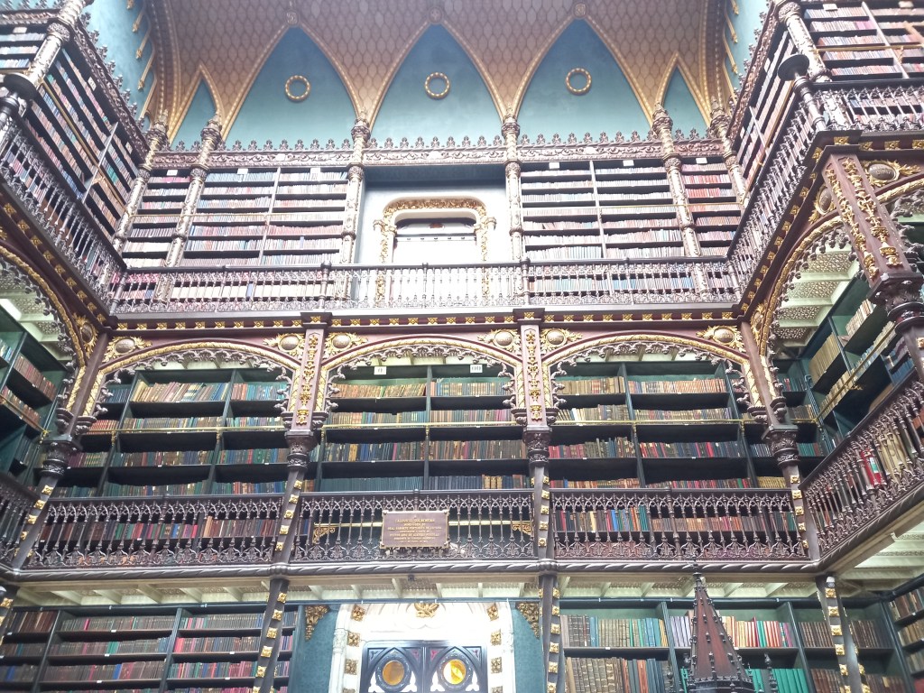 Hoje, eu fiquei com o coração maravilhado por estar diante um um lugar como disse “culturalmente rico a todos nós brasileiros (quem gosta de leitura irá compreender o que estou falando). O Real Gabinete Português é uma biblioteca tradicional cultural lusófona no centro do Rio.