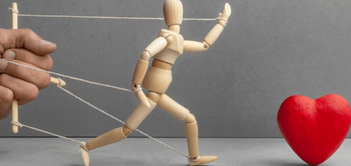 A dependência, ela tem o lado bom e lado ruim. Em geral, o que se entende por ruim, dar-se pela exigência de algo. Quer dizer, falta um detalhe na relação que vem sendo negligenciado. Isso faz com que surjam as exigências. Pode ser falta de atenção, de responsabilidade afetiva, amor, respeito e uma série de coisas que precisam ser trabalhadas. Mas, basicamente é a cobrança por algo. Quando uma pessoa sente que se doa sozinha, ela passa a exigir ou querer controlar o que a outra pessoa faz ou deixa de fazer. Neste caso, a situação se mostra como na imagem. A pessoa quer ter o domínio sobre o outro. É como se ele ou ela, se sentisse proprietário, dono dos desejos e das vontades do parceiro. Aí, tem um outro ponto interessante, porque começa os joguinhos emocionais para tentar chamar a atenção da pessoa que tem se mostrado ausente na relação que é chantagens emocionais, a manipulação com o intuito de controlar a outra pessoa.